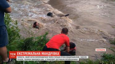 В Славском Львовской области 38-летнего туриста снесло течением, когда он пытался переправиться через горную реку на квадроцикле. До приезда спасателей мужчина сумел выбраться из воды самостоятельно. Квадроцикл пришлось вытаскивать автомобильной лебедкой. Во время экстремального путешествия турист не пострадал.
