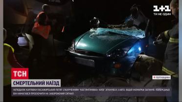 Смертельная авария в Полтавской области: пассажирский поезд наехал на машину, один человек погиб. ДТП произошло накануне на железнодорожном переезде вблизи Карловки. Скоростной пассажирский поезд сообщением "Константиновка-Киев" столкнулся с иномаркой "Форд Фокус". От удара авто смяло и протянуло несколько метров. Шансов выжить у водителя не было. По предварительным данным, 51-летний водитель иномарки пытался проскочить на запрещающий сигнал светофора. После аварии железнодорожное движение на участке было заблокировано.