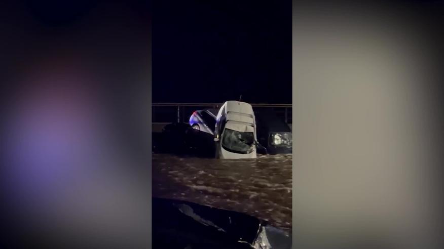 Во время наводнения в Испании потоки воды снесли с улицы десятки машин