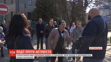 В Коростышеве - настоящая война с применением кулаков, газовых баллончиков и яиц. Водители-нарушители воюют с мужчиной, который заставляет их соблюдать правила парковки и не ставить автомобили на газонах или занимать места для инвалидов. Доходит до рукоприкладства.
