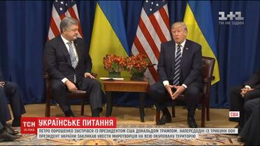 Это отметил президент Украины, когда благодарил американского коллегу за помощь. Дональд Трамп взамен пожаловался на ураганы, что один за одним кромсают американское побережье. Уже вне камер президенты обсуждали миротворческую миссию ООН в Донбассе.
