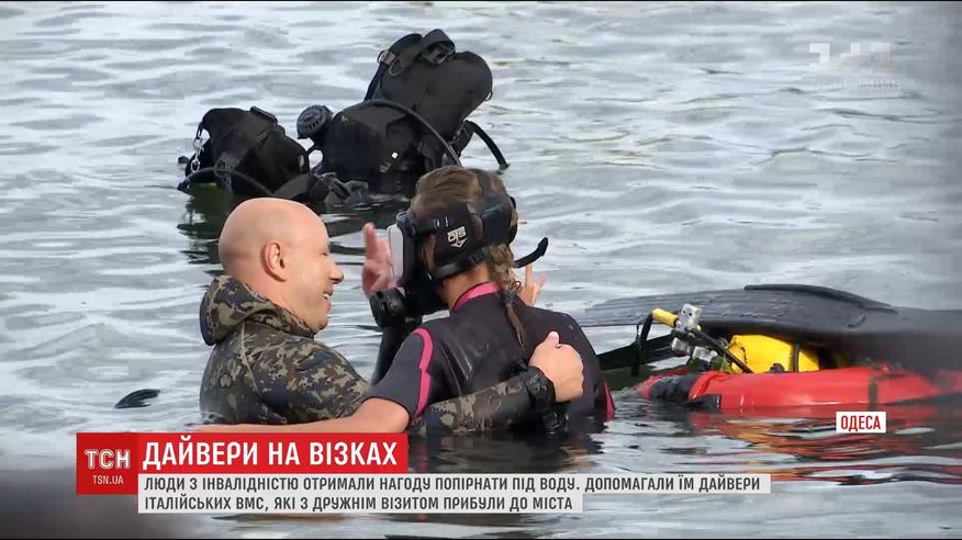 Военные из итальянского эсминца помогли людям с инвалидностью заняться дайвингом