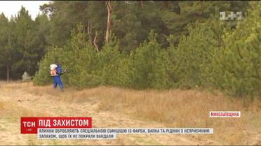 В Николаеве к работе приступили волонтеры, потому что в лесхозе не хватает людей для охраны. На елки ежедневно разбрызгивают смесь из водоэмульсионной краски, извести и воды с неприятным запахом. Она, говорят лесники, деревьям не вредит.