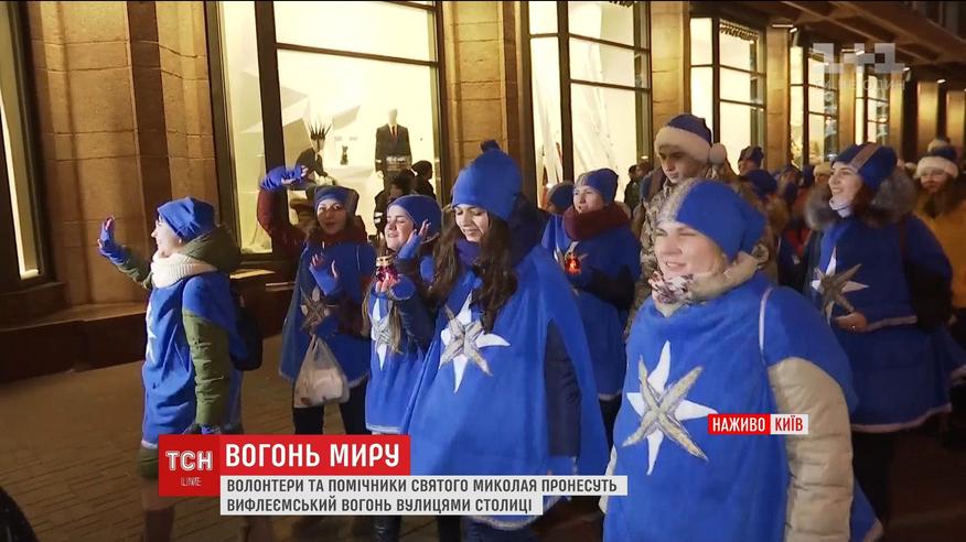 Чтобы добраться до Киева, огонь преодолел тысячи километров. Его перевозили в специальных боксах самолетом в Австрию, далее - в Польшу, а уже из Кракова наши скауты его доставили в столицу еще неделю назад. И вот сегодня в день Святого Николая свечи разнесут по центральным улицам города.