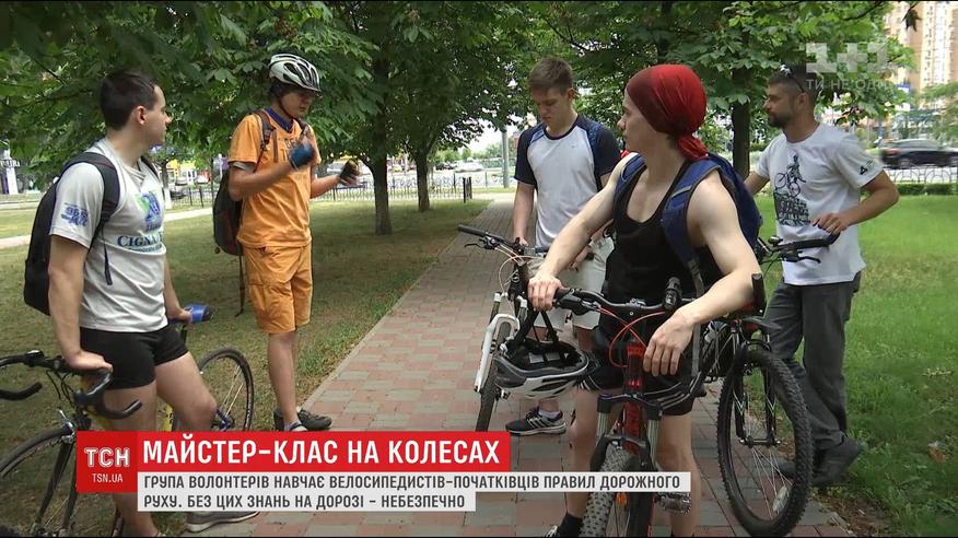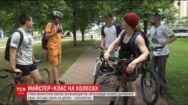 Волонтеры в Киеве учат велосипедистов правильно ездить по городу