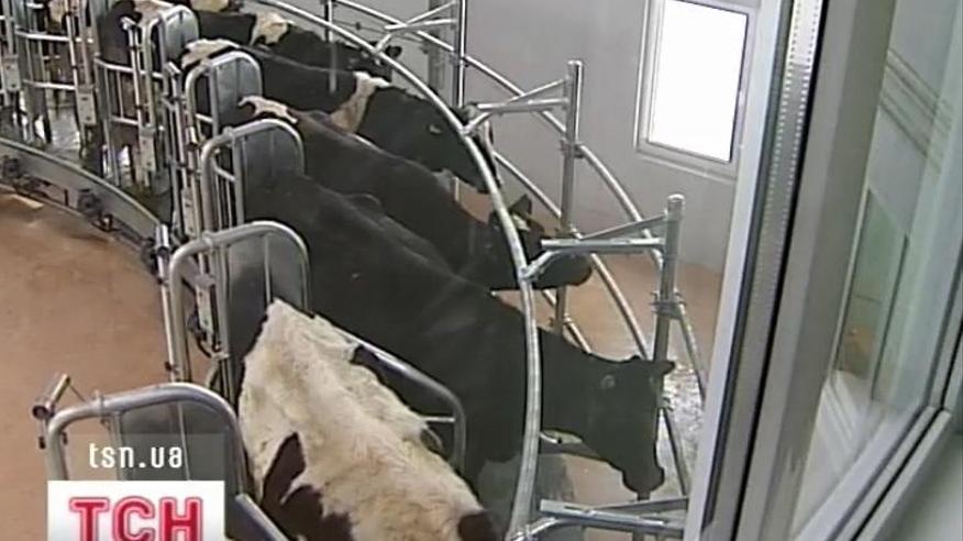 ТСН решила убедиться: справедливо ли соседи грешат на отечественную молокопродукцию? Отследили процесс от "А" до "Я". Сначала их моют, катают на карусели, а уже потом доят. Так выглядит технология в недавно возведенном на Киевщине современном животноводческом комплексе с чудо-доильными аппаратами.