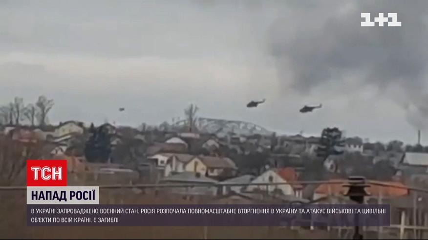 Над Киевским морем произошло воздушное сражение. В Вышгородском районе, что сразу к северу от украинской столицы, около полудня люди срочно вынуждены были спускаться в бомбоубежища. Местные насчитали там 12 вертолетов, кружившихся в небе. По словам очевидцев, одна из воздушных машин была сбита, по другую от Вышгорода сторону Днепра, возле поселка Хотяновка. По информации заместителя министра внутренних дел, продолжается бой недалеко от Гостомеля. По словам Антона Геращенко, окрестность городка - самая горячая точка противостояний.