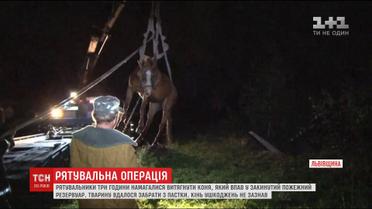 Возле Львова спасатели три часа вытаскивали лошадь, которая упала в пожарный резервуар