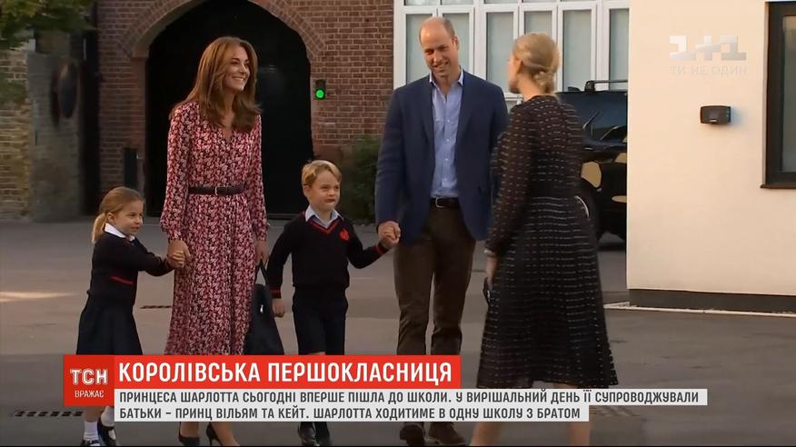 В учебное заведение в решающий день она приехала в сопровождении родителей принца Уильяма, Кейт и старшего брата Джорджа. Они вместе ходить в одну школу на юге Лондона. Оба королевских чад были одеты в темно-синюю форму.