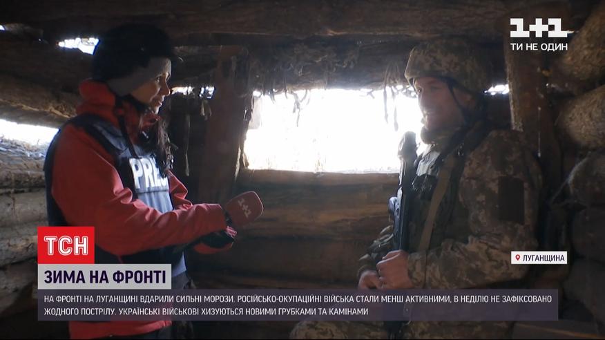 Сильные морозы ударили на фронте. И поэтому, говорят военные, боевики стали менее активными. В воскресенье вообще не осуществили ни одного выстрела. Сами же ребята утепляются, колют дрова и щеголяют друг перед другом, а еще - перед журналистами.