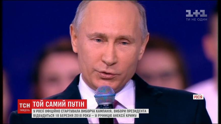 В России начинается большой политический театр. Президентская избирательная кампания стартовала официально. В угоду новому имиджу Владимира Путина даже изменили дату выборов. Участки должны были открыться 11 марта, но все случится на неделю позже - 18-го - в годовщину аннексии Крыма. Потому что Путин видит себя уже не борцом с терроризмом в Чечне, и не секс-символом России, а собирателем земель.