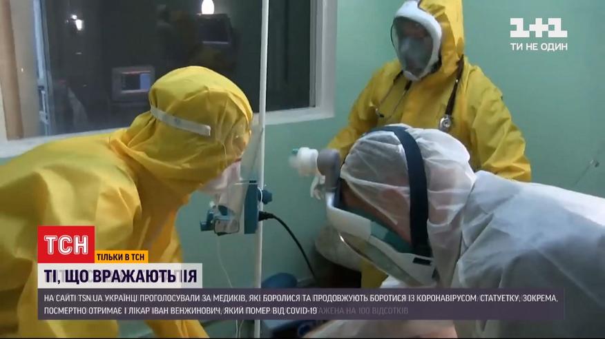 Ну и настоящие герои ушедшего года - врачи. ТСН подвела итоги ежегодной премии "Те, кто поражают". Среди 19-ти номинантов 2020 году голосованием на сайте выбрали 7 победителей. На следующей неделе ТСН покажет истории этих героев, которые потрясли всю страну.