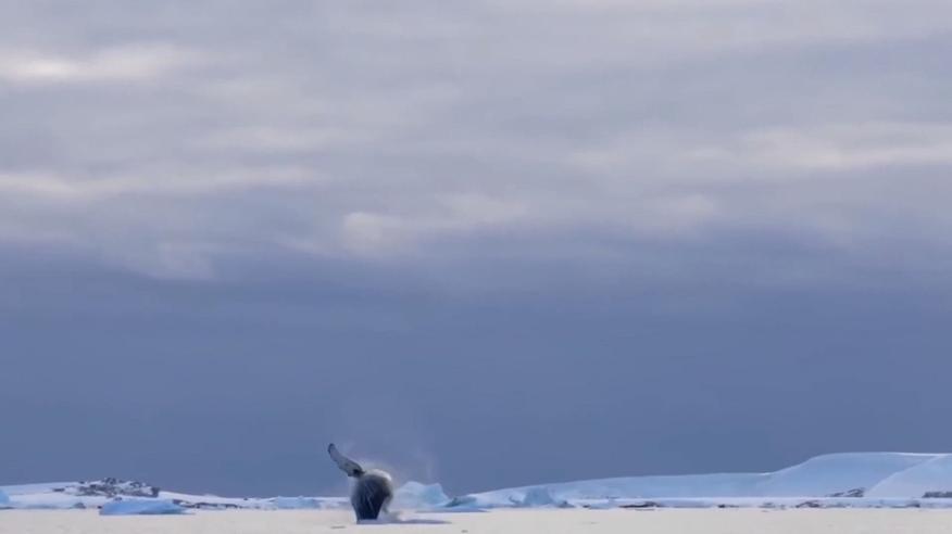 Выныривают из воды и крутятся над океаном: как прыгают киты в Антарктиде