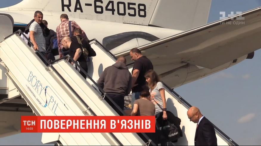 Люди, которых обменяли на украинских пленных, уже прибыли в Россию. Пропагандистские журналисты встречают пассажиров российского самолета в аэропорту "Внуково".