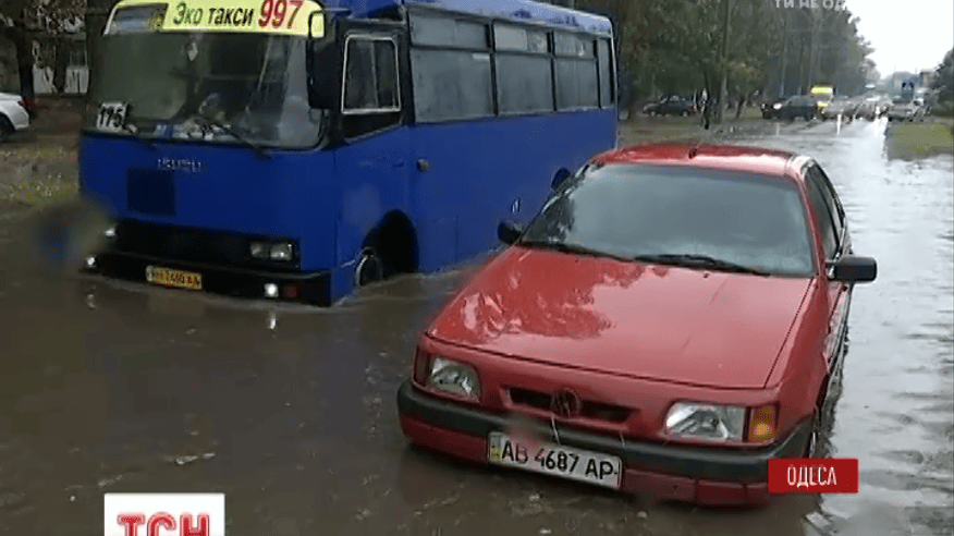 Самый мощный потоп за почти 130 лет в Одессе. Местные улицы стали водоплавающими после того, как в городе всю ночь бушевал шторм. Порывы ветра достигали более 20 метров в секунду, дождь лил стеной. Коммунальщики утром убирают ветки и деревья, поваленные ветром, и откачивают воду, пытаясь расчистить забитые стоки.