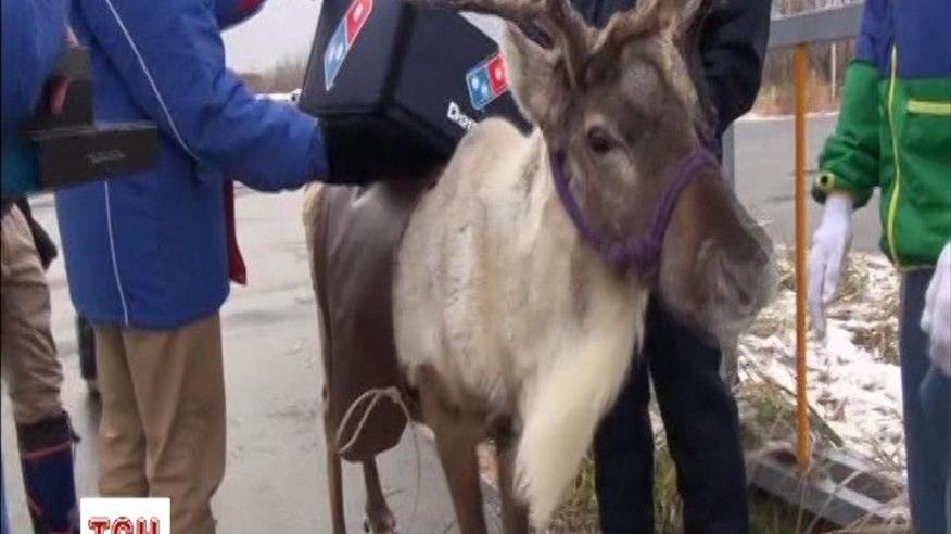 Одна из фирм, доставляет пиццу, решила на Рождество порадовать своих клиентов праздничным курьером - Рудольфом, одним из оленей Санта-Клауса. Видео с тренировочного заезда попало в сеть. Работники компании говорят, что Рудольф может развивать скорость до 80 километров в час. Также на животное повесят GPS устройство, чтобы клиент смог отследить траекторию передвижения заказ.