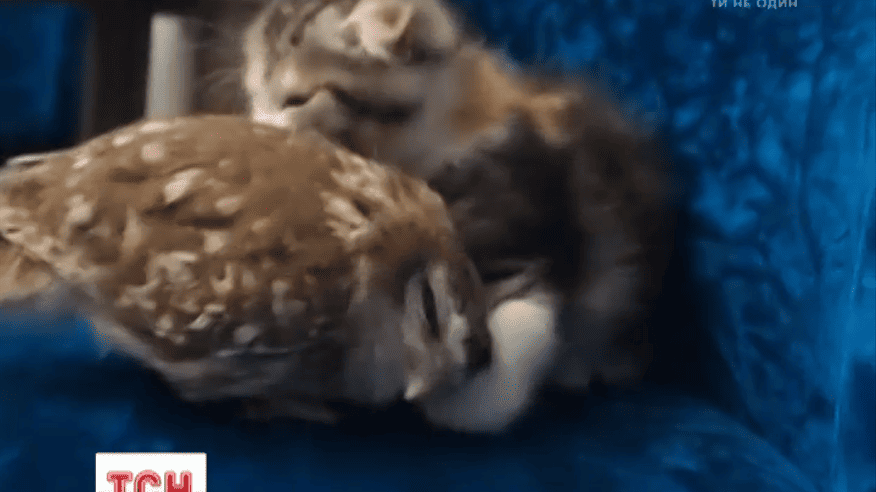 Японские котенок и сова стали звездами интернета