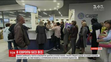 Очередь за биометрическим паспортом украинцы сегодня занимали с пяти утра. Начало работы безвиза, который подписали вчера, совпадает с началом сезона отпусков. Поэтому люди массово пошли в сервисные центры.