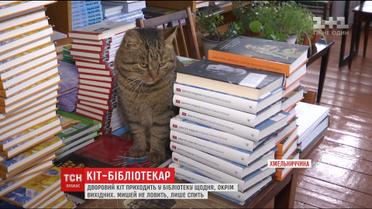 Хвостатый книголюб ежедневно ходит в библиотеку как на работу. В городе Дунаевцы Хмельницкой области уже десять лет животное "работает" ведущим специалистом в отделе комплектации местной библиотеки. Имеет два выходных в неделю и восьмичасовой рабочий день, зарплата договорная - рыба и мясо.