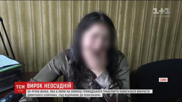 В Сумах суд огласил приговор 30-летней женщине, которая в июле на остановке похитила двухлетнего мальчика. Выхватила малого просто с рук его старшей сестры и пыталась убежать. Прохожие бросились на помощь и отобрали ребенка, а женщина передали полицейским. Задержанная им объяснила, что приняла мальчика за своего сына. Экспертиза подтвердила - на время совершения преступления похитительница не осознавала своих действий, страдала психическими расстройствами.