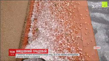 За пять минут град в Испании разбил машины, крыши домов и окна