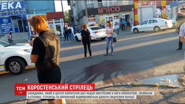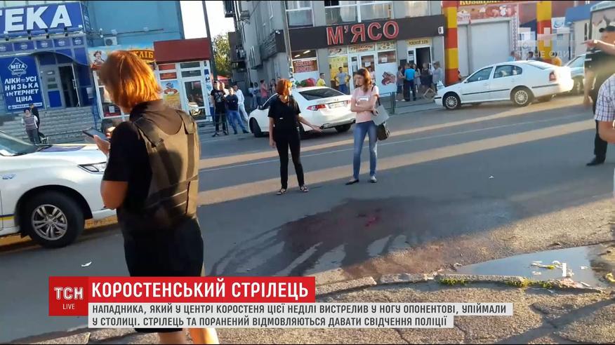 Подозреваемого задержали бойцы спецподразделения КОРД в одной из киевских квартир, где он скрывался. У мужчины нашли пистолет, из которого тот стрелял и ранил оппонента. В воскресенье вечером нападающие стреляли из травматического оружия, потом один из них достал из машины пистолет и выстрелил в ногу пострадавшему. Нападающий убежал.