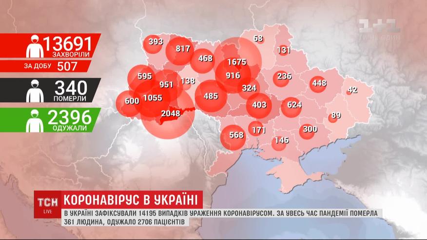 Более полутысячи новых диагнозов за сутки. В Украине снова возросло количество официально подтвержденных случаев коронавируса. В общем диагноз "коронавирус" поставили более 14 тысячам пациентов. Летальных случаев на данный момент 361, из них за сутки - 21. Больше о коронавирусе в Украине