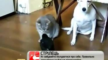 Не возникает споров в тройке и во время обеда - а все из-за того, что ворона делит еду поровну и кормит каждого отдельно