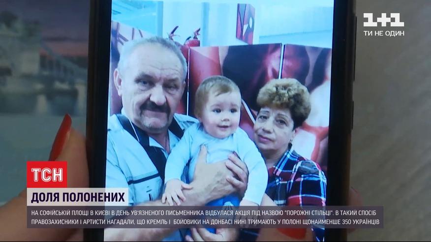 По меньшей мере 350 украинцев держат в заложниках Кремль и пророссийские боевики на оккупированной части Донбасса. Обновленные данные по пленным сейчас передала правозащитникам СБУ. Накануне пленников упоминали в центре столицы. Актеры и режиссеры присоединились к акции "Пустые стулья" - мероприятия с таким названием в День заключенного писателя проходят по всему миру. В Украине из-за войны с Россией в середине ноября вспоминают о всех пленных. История одного из них - Виталия Атаманчука, которого оккупанты Донецкая называют шпионом, и которого осудили на 17 лет - расскажет ТСН.