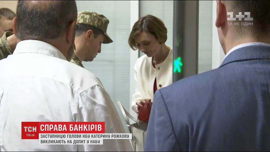 Рожкова приехала в НАБУ на дорогой иномарке в сопровождении адвоката Андрея Федура. ТСН Рожкова рассказала, что в Антикоррупционное бюро пришла сама, ее не вызывали. По данным СМИ, Екатерина Рожкова якобы способствовала выделению кредита банка, с руководителем которого имеет родственную связь.