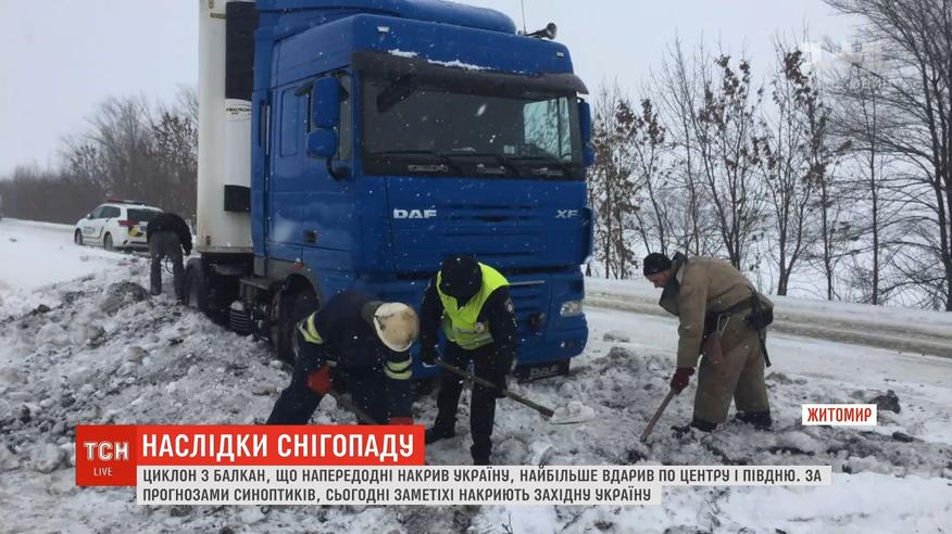 Циклон с Балкан, обрушившегося накануне, сильнее ударил по Центру и Югу Украины. На международных трассах из-за непогоды образовались километровые пробки. Спасатели всю ночь вытаскивали людей из сугробов.