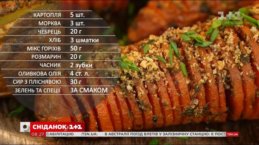 Рецептов с ней существует множество, но этот - однозначно особый. Сегодня приготовим запеченный картофель с орехово-сырной крошкой. Записывайте, вам понадобится: картофель - 5 шт., морковь - 3 шт., тимьян - 20 г, хлеб - 3 куска, микс орехов - 50 г., розмарин - 20 г, чеснок - 2 зубка, оливковое масло - 4 ст. л., сыр с плесенью - 30 г, зелень и специи - по вкусу.