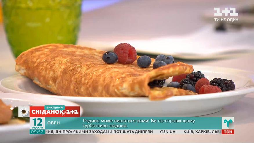 Идеальный завтрак чемпионов, какой он? В День физкультуры и спорта Валентина Хамайко и Александр Попов приготовили овсяные блины с различными начинками.