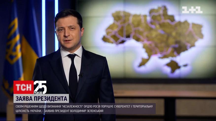 "Мы давно и ко всему готовы. Никаких причин для хаотических действий со стороны Украины нет", - с такими словами президент Зеленский обратился ночью к украинцам на фоне признания Россией самопровозглашенных "ДНР" и "ЛНР" и решения Путина о введении туда российского войска. Таким образом, по словам Зеленского, Кремль легализовал своих солдат на оккупированных территориях Донбасса. Все это, добавил президент, может означать односторонний выход России из минских соглашений и игнорирование решений в рамках "Нормандии".