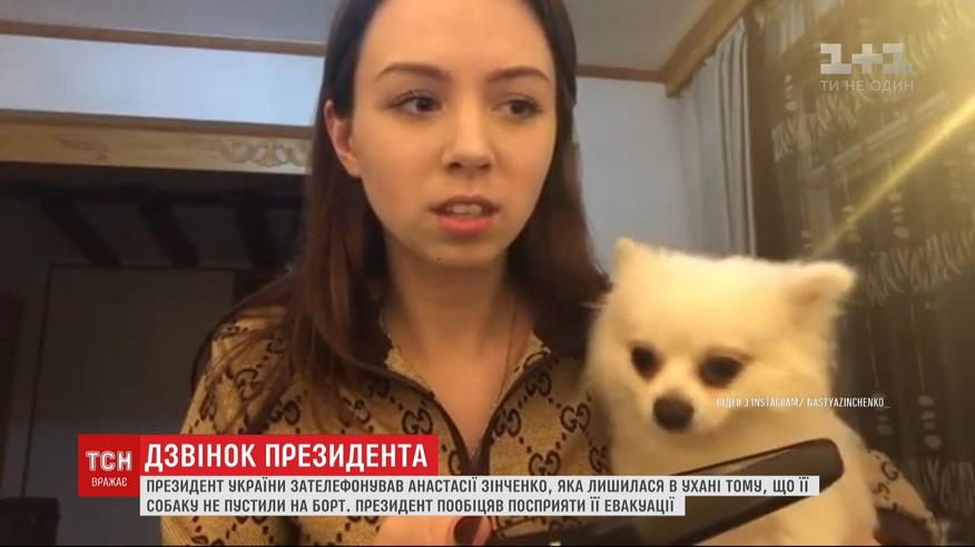 Анастасии Зинченко - украинке, которая осталась в китайском Ухане из-за того, что ее собаку не позволили вывезти из страны, позвонил президент Владимир Зеленский. Видео разговора девушка опубликовала в соцсети. Президент пообещал посодействовать ее эвакуации с любимицей Мишель.