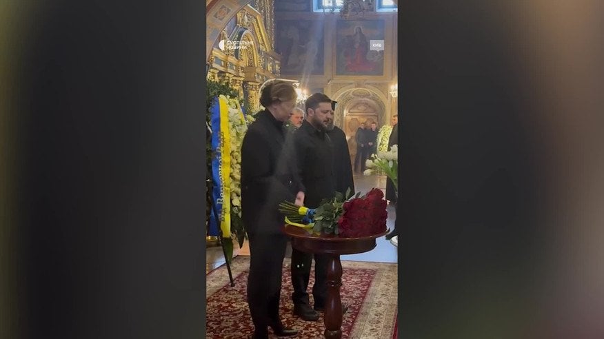 Президент Украины Владимир Зеленский и первая леди пришли на прощание с патриархом ПЦУ Филаретом в Киеве.