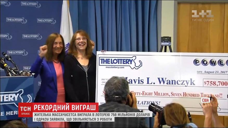 Женщина выиграла 758 миллионов долларов. Джек-пот стал крупнейшим в истории розыгрыша, из тех, которые доставались одному человеку. Мать двоих детей Мэвис Венчик более 30 лет работала в госпитале, но узнав, что разбогатела, сразу позвонила своему начальнику и сказала, что увольняется.