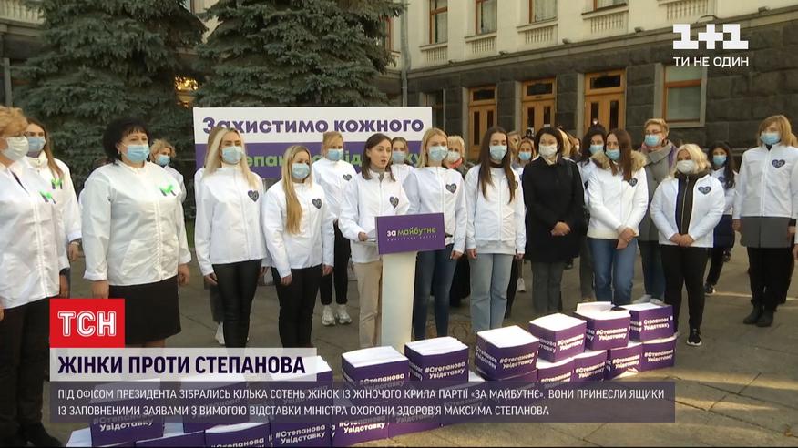 Пол миллиона подписей за отставку министра здравоохранения Максима Степанова. Сегодня под Офисом президента собрались несколько сотен женщин из партии "За будущее". С собой они принесли более 20 коробок с заполненными бланками. Они говорят, что собрали эти подписи во всех регионах Украины и считают, что гарант Конституции должен реагировать на них.