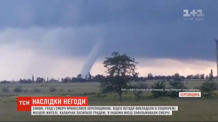 Ливни, град и даже смерч пронеслись накануне по Херсонской области. Поселок городского типа Каланчак засыпало градом, который накрыл все вокруг плотным слоем. Тем временем в другом месте области люди сняли смерчи. Один закрутил пыль на поле, а другой - поднялся над морем.