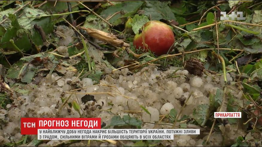На Украину надвигаются дожди и шквалы. Первой стихию почувствовали на западе страны. На Ровенщине град, размером с перепелиное яйцо, укрыл землю льдом, как зимой. Улицы Ивано-Франковска превратились в реки, в которых тонули машины.