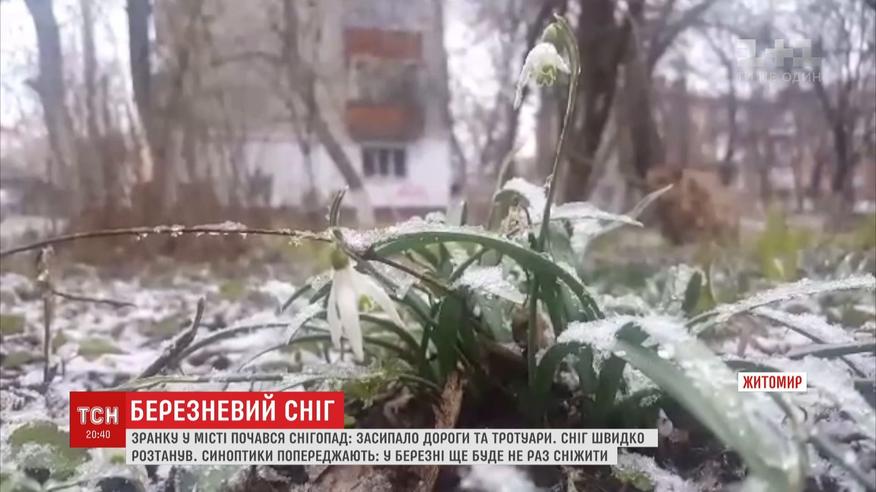 Житомир утром засыпало снегом