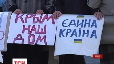 Крымчане, которые против присоединения автономии к России, стали вдоль дорог с украинскими флагами, желто-голубыми шариками и антивоенными плакатами. Только под Симферополем вдоль ялтинской трассы выстроились около трех сотен противников присоединения к России.