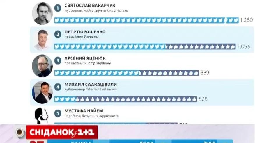 Среди лидеров общественного мнения редакторы журнала, проанализировав «Фейсбук» и «Твиттер», выделили Святослава Вакарчука, Петра Порошенко, Арсения Яценюка, Михаила Саакашвили и Мустафа Найем.