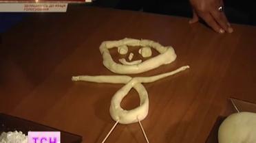 Алексей Мочанов, Тоня Матвиенко, Никита Добрынин не покладая пальцев, мяли тесто и катали из него тоненькие колбаски, все ради того, чтобы установить рекорд - слепить самый маленький в Украине калачик.