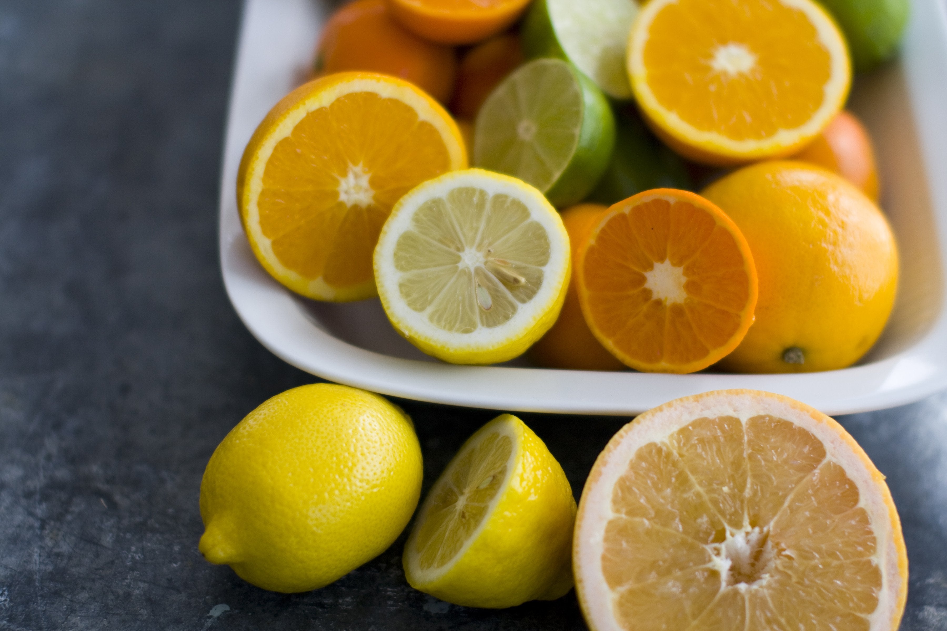 Такие фрукты как лимоны, мандарины, апельсины, грейпфруты, киви, гранаты, хурма.