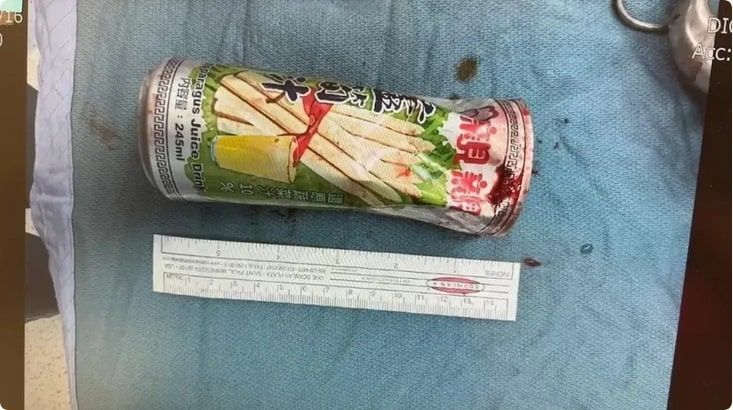На Тайване врачи были шокированы, когда обнаружили банку из-под безалкогольного напитка в заднем проходе мужчины.