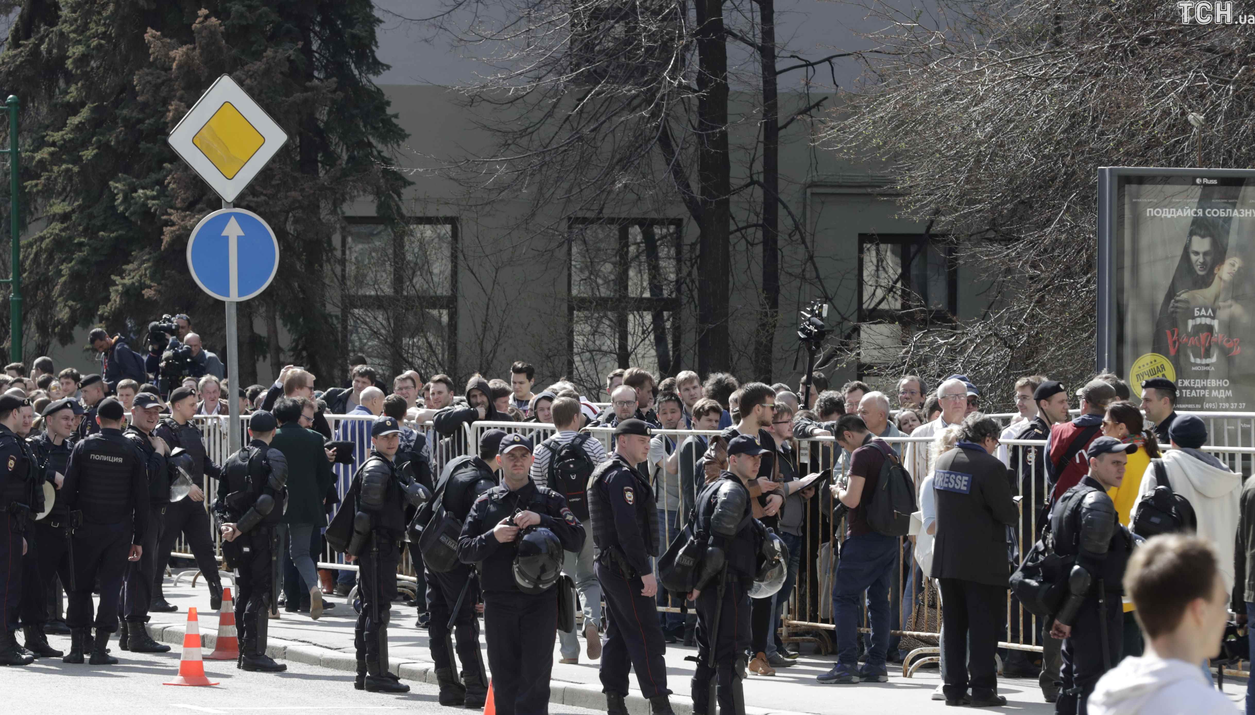 Нагадаємо, в очікуванні акції навколо приймальні президента у Москві поставили паркани, бетонні блоки та інші загородження, а проходи заставили комунальною технікою.
