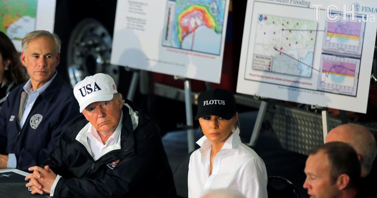Нагадаємо, що раніше першу леді США Меланію Трамп ЗМІ розкритикували за те, що вирушила в Техас, який постраждав від урагануна шпильках. На знімках перед відправкою в Техас Трамп була відображена на підборах у чорних штанях і чорній кофті. Зверху на ній був бомбер кольору хакі, а волосся було розпущені. При цьому, коли президентська пара прибула в Техас, Трамп вийшла з літака в білій сорочці з піднятим коміром і в тих же чорних брюках. На ногах у неї замість туфель виявилися білі кросівки.