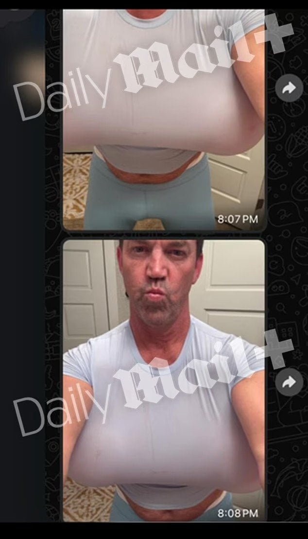 На іншому фото було видно чоловіка міністерки в облягаючих зелених легінсах та білому топі, натягнутому на дві опуклості, причому на обох знімках чітко видно його обличчя.