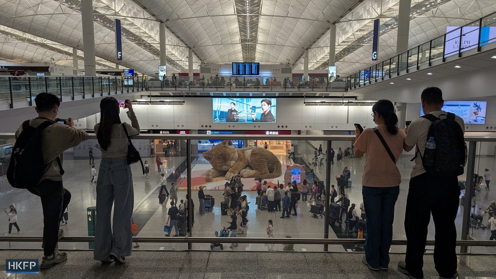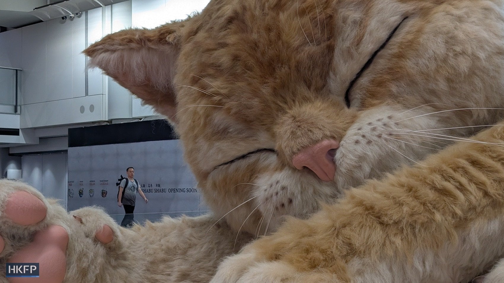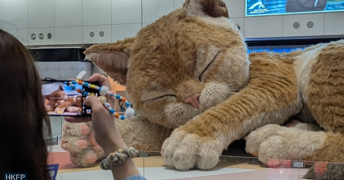 Аеропорт Гонконгу встановив інсталяцію рудого кота. Фото: HKFP
